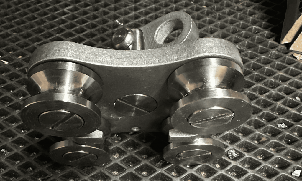 - Изготовление роликов и осей: Также произведено методом токарной обработки. Использование ЧПУ позволило добиться минимальных допусков, что важно для плавного хода каретки по направляющим.